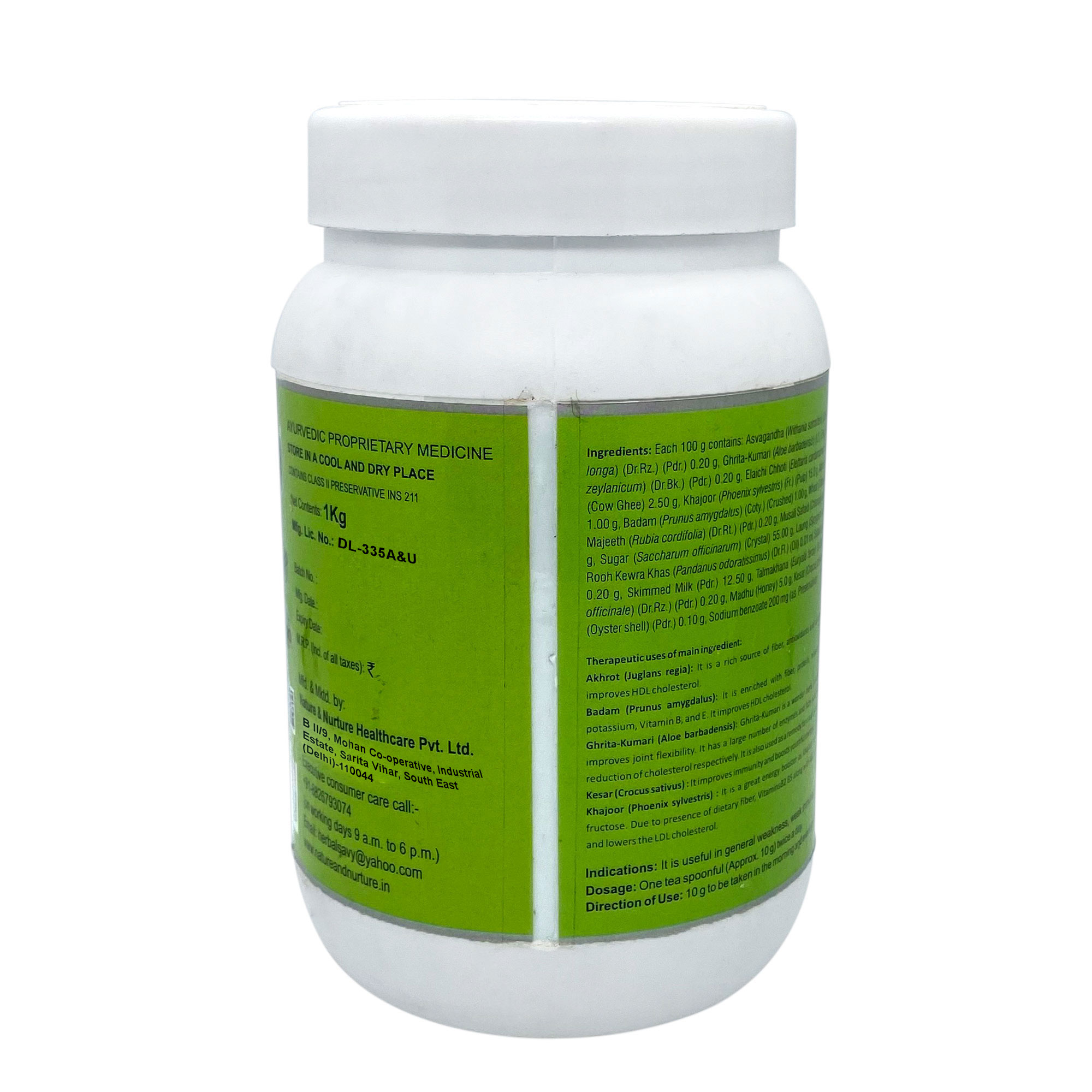 Contains herbs for glowing skin, healthy bones, immunity, brain, heart, lungs, liver, and kidney are blended to give an experience of all-round well-being to the consumer & regular consumption helps promote optimal functioning of the vital organs.