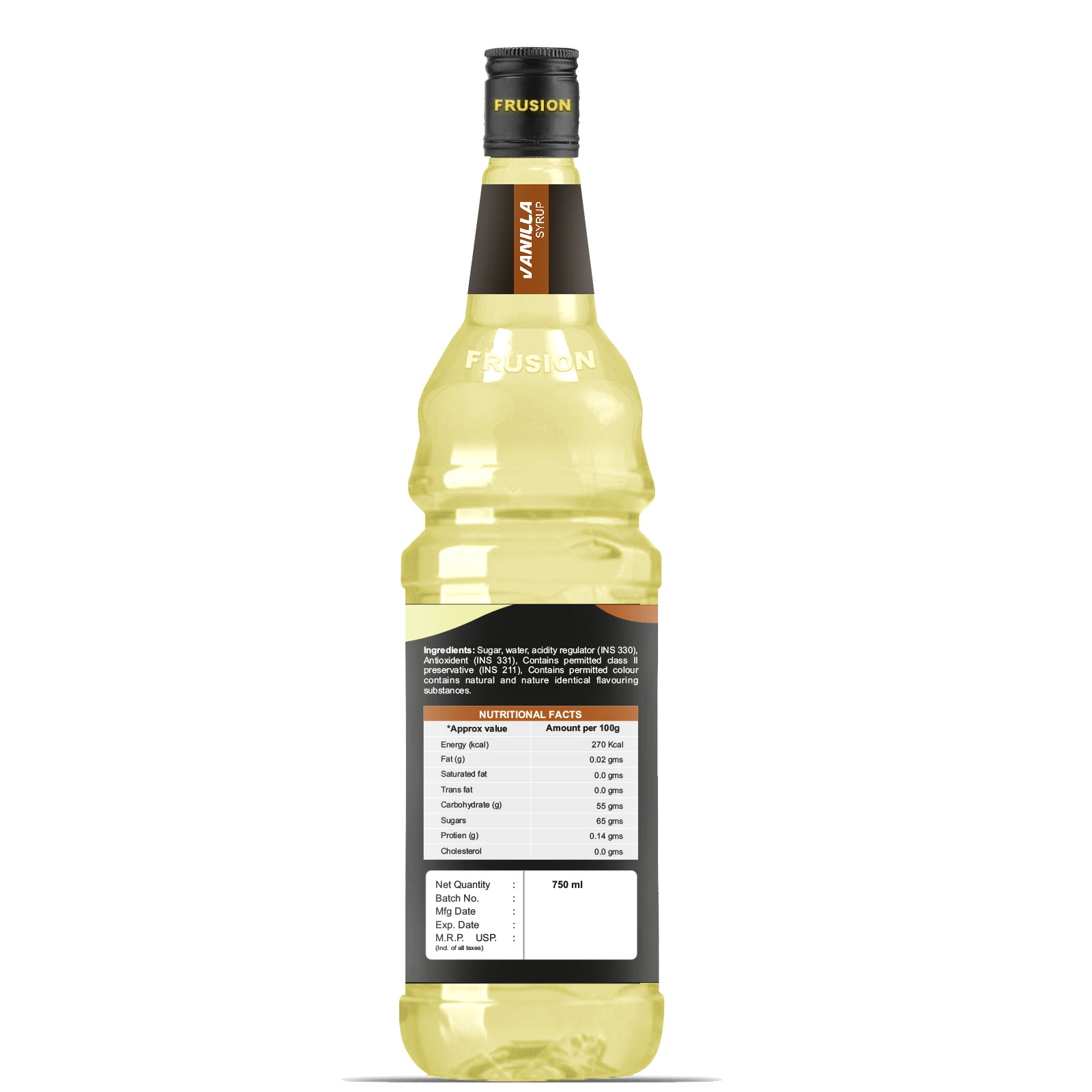 - Package Includes: FRUSION VANILLA SYRUP (750ML)