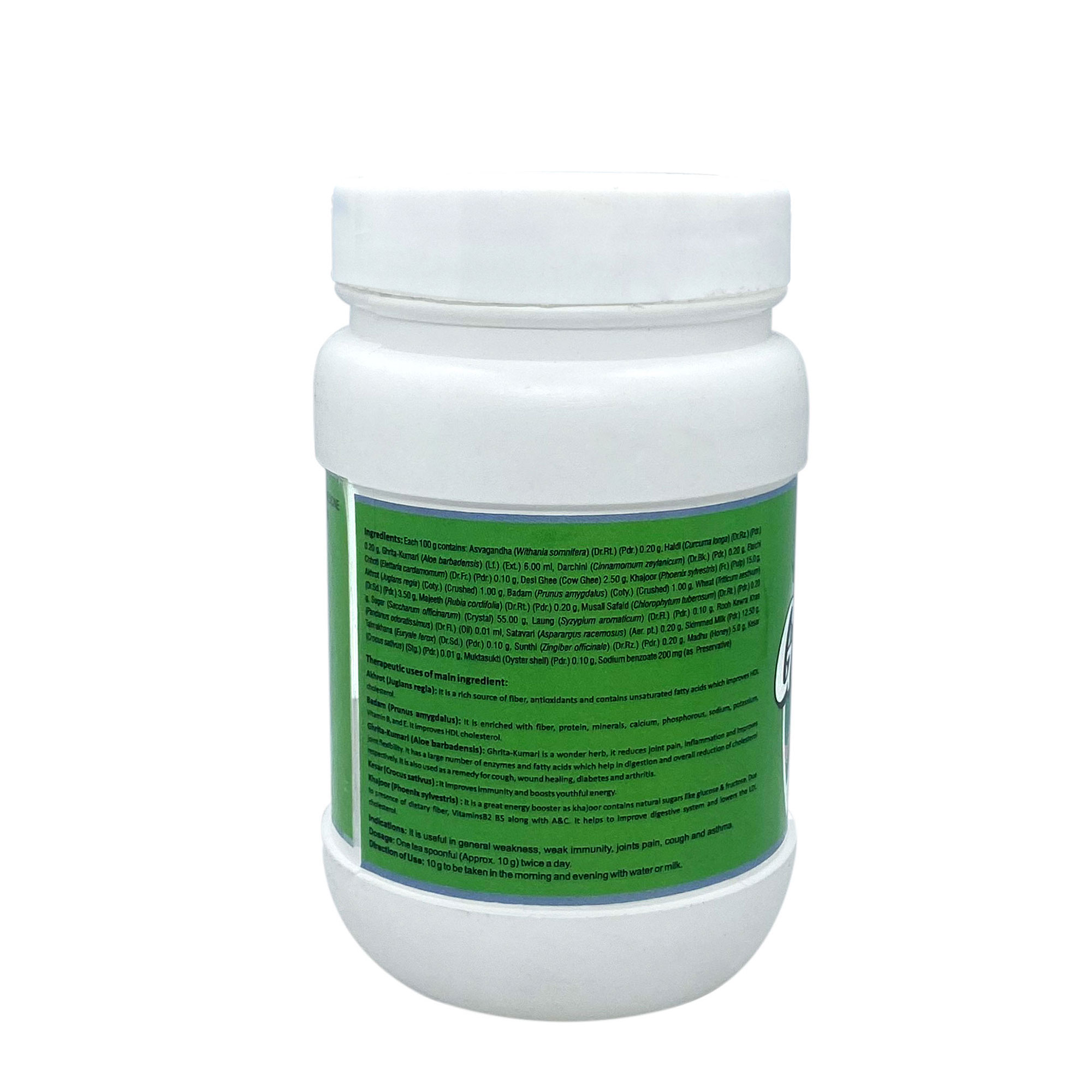 Contains herbs for glowing skin, healthy bones, immunity, brain, heart, lungs, liver, and kidney are blended to give an experience of all-round well-being to the consumer & regular consumption helps promote optimal functioning of the vital organs.