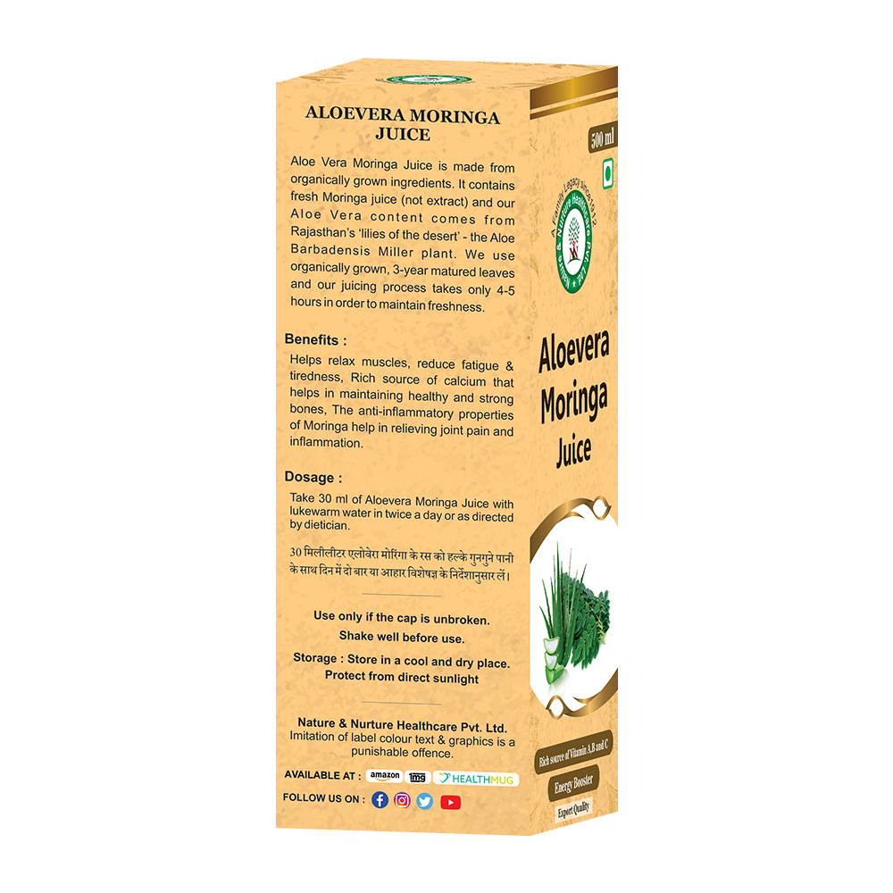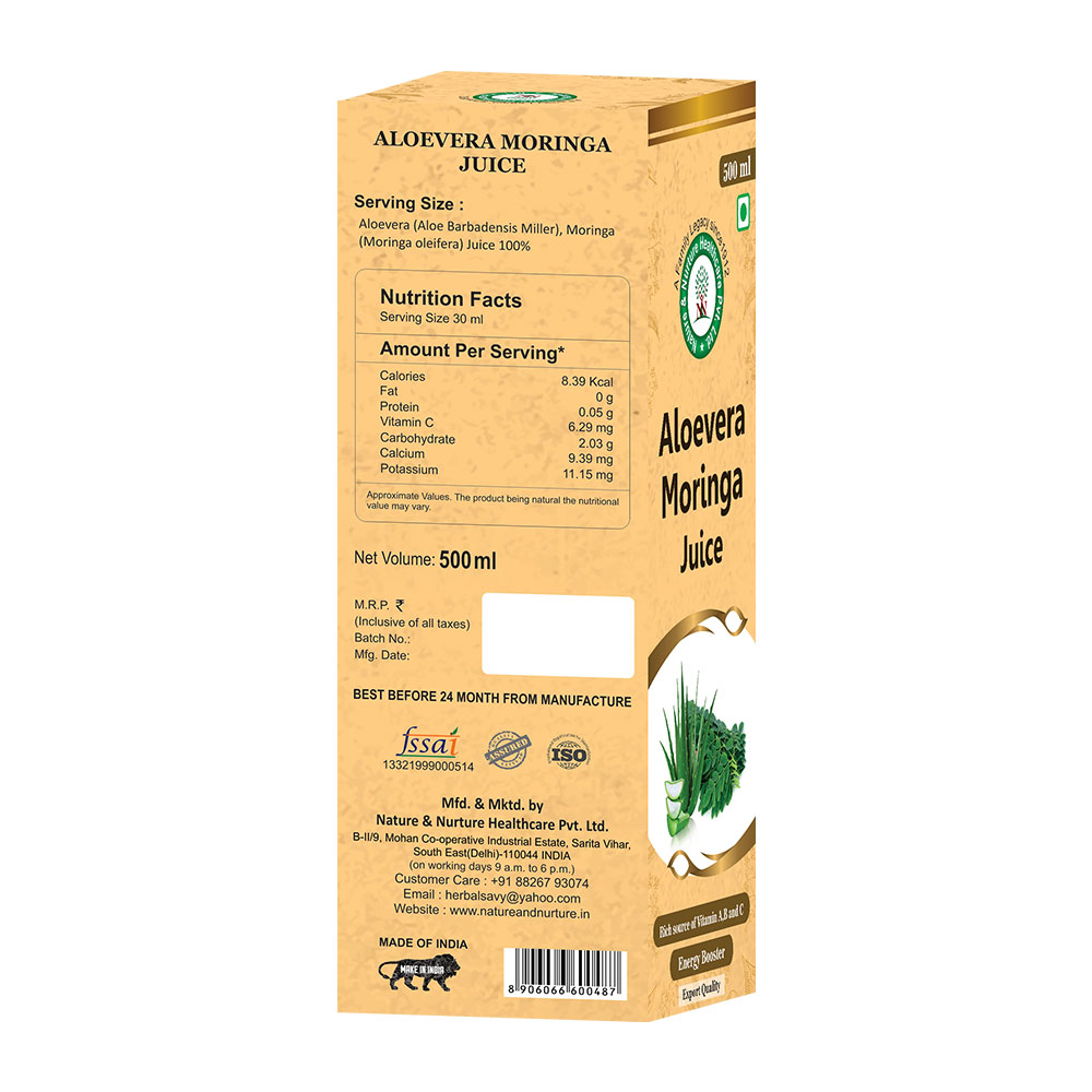 - Package Includes: ALOEVERA MORINGA JUICE (500ML)