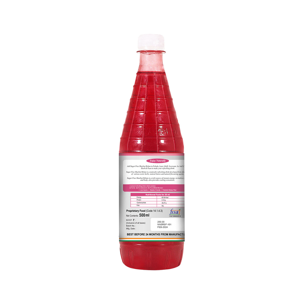 • Mix 30 ml of Sugar Free Sharbat Rehan with 200 ml iced water to make it a real refreshing drink.